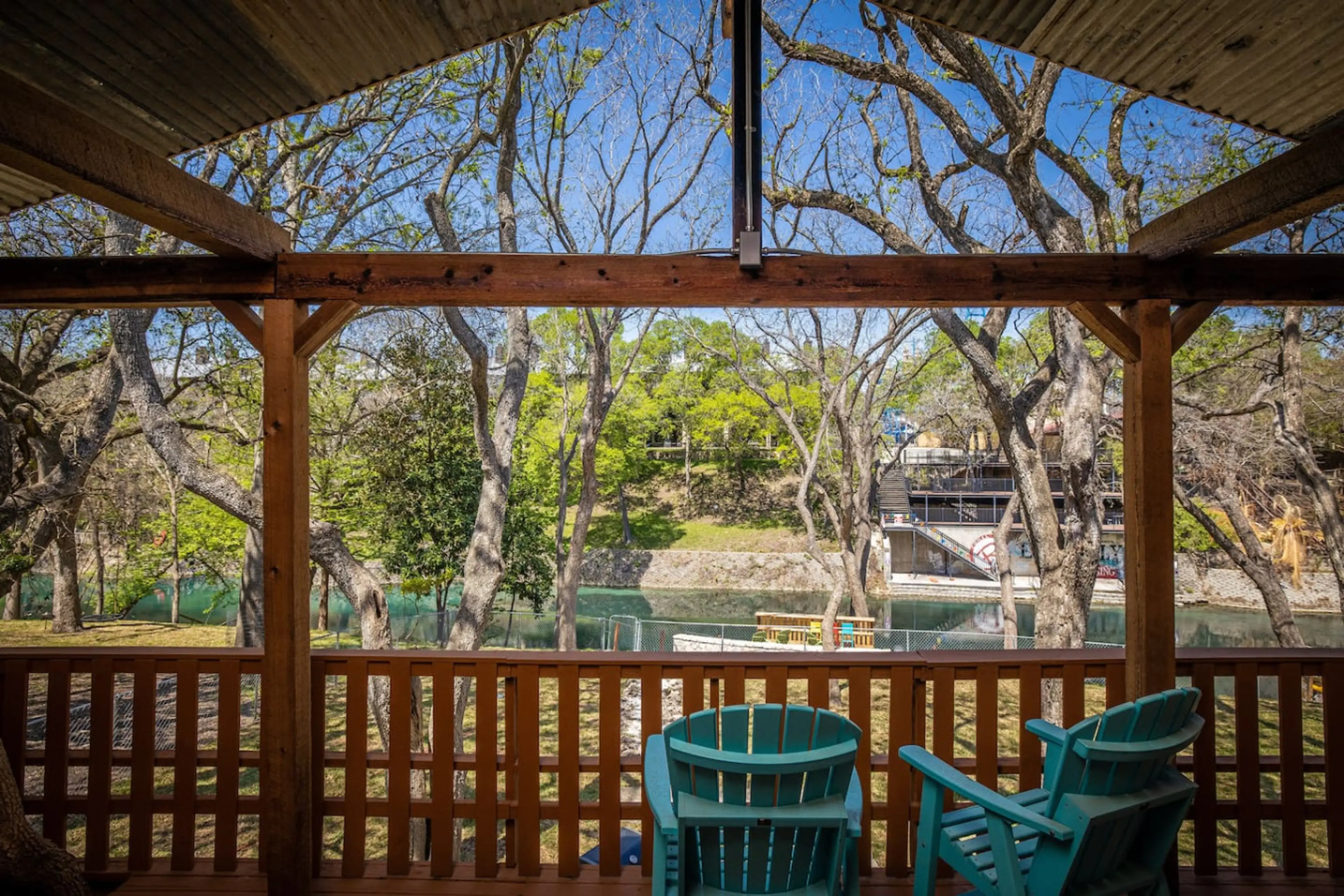 Welcome to Blue Sky! This is the upstairs level of this iconic 2-story Comal River home. Featuring 2 bed and 2 baths, a full kitchen, and cozy living space, it’s ideal for families or friends ready to make the river their backyard. Step onto the large balcony overlooking the river—perfect for morni...
